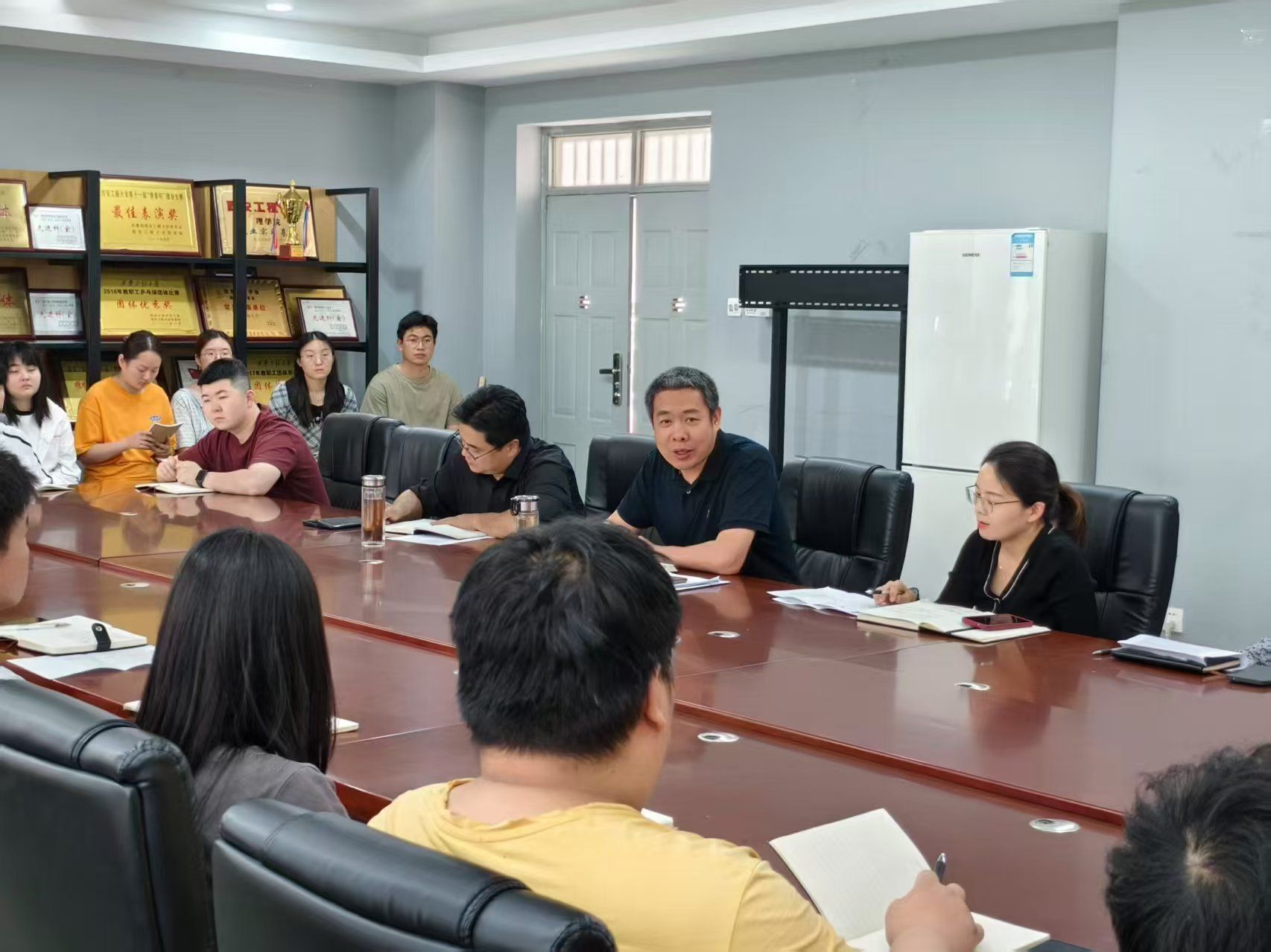 随后,研究生党员代表们结合自身求职和求学经历,畅所欲言。其中,已签约员工详细分享了简历优化、面试技巧及求职经验;考博、考公同学则分享了自身成功备考的经历和成功经验;尚未签约员工表达了岗位竞争激烈、专业匹配度低、职业规划迷茫等困惑;部分同学针对公司就业指导工作提出了建设性意见等。大家纷纷表示,作为研究生党员,将充分发挥先锋模范作用,一方面自己积极就业,另一方面帮助身边同学解决就业难题。