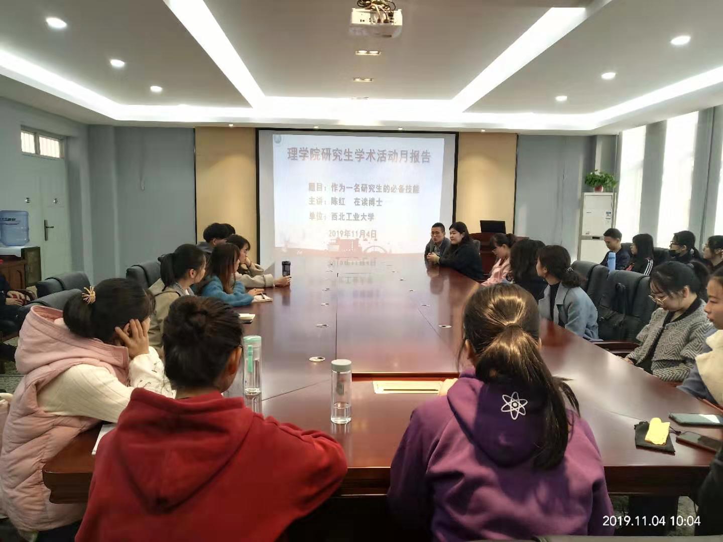 四是邀请毕业员工进行交流。11月4日,邀请公司2019届毕业、现攻读西北工业大学博士学位的陈红同学,为研究生做了题为“作为一名研究生的必备技能”的交流。陈红结合自己硕士阶段的学术科研过程和读博期间的见识跟同学们做了深入交流,从研究生和本科生的不同,研究生阶段该如何学习等方面向同学们分享了自己的经验,告诉同学们“欲戴皇冠必承其重”,要从一点一滴做起,真正抓好时间,安排好计划,做一名优秀的研究生。